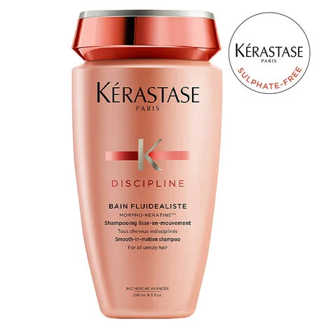 Discipline Bain Fluidealiste Gentle is a sulphate-free, smoothing shampoo that is ideal for sensitized, colour-treated or chemically-treated hair. Formulated with Morpho-Kératine Complex technology, Surface Perfector and High Precision Care Agent, this ultra-gentle formula coats each hair fibre, restoring uniformity, transforming frizzy hair into nourished, smooth, soft strands.